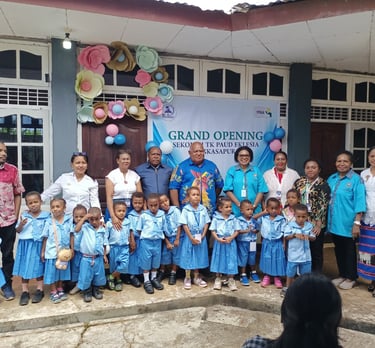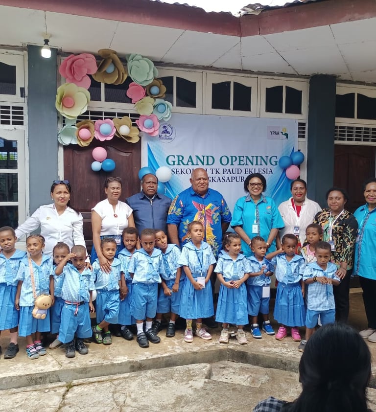 Pembukaan perdana Sekolah TK PAUD Eklesia Angkasapura, Distrik Jayapura Utara, Kota Jayapura, Papua, Sabtu 3 Agustus 2024 pagi dengan ditandai pemotongan pita secara bersama -sama. Oleh Ketua Klasis Gereja Kemah Injil (Kingmi) Kota Jayapura Pdt Menny Yogi, Badan Pengurus Gereja Eklesia, Ketua Yayasan Papua Anigou Aweida (YPAA) Prof. DR. Vince Tebay, Sos., M.Si. Yang mana juga resmi disaksikan langsung oleh Pemerintah Kota Jayapura melalui Asisten I Setda Kota Jayapura Eveert Meraudje mewakili Pj Walikota Jayapura Christian Sohilait, beserta perwakilan Dinas Pemberdayaan Perempuan Provinsi Papua ini.